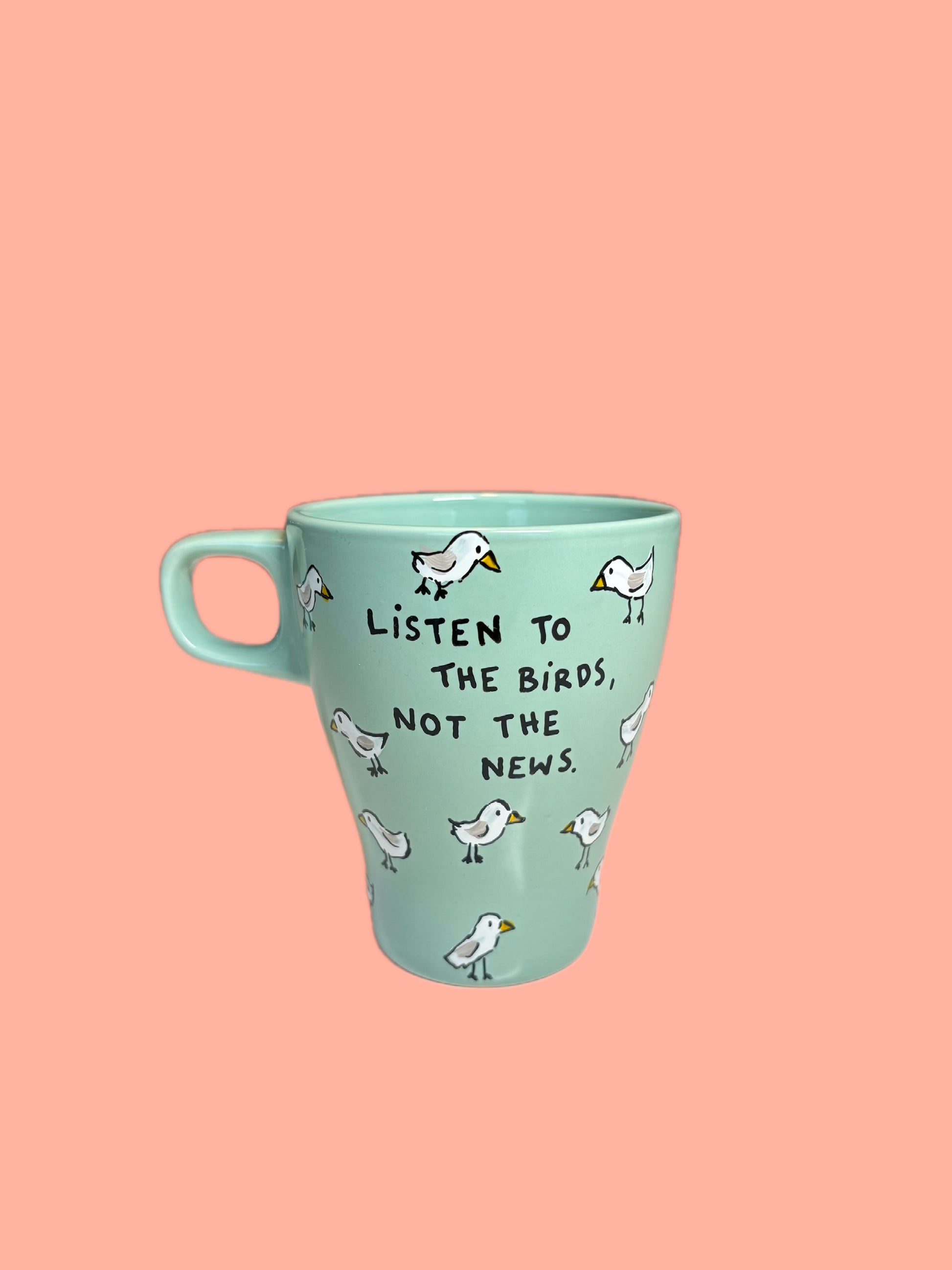 Håndmalt gjenbrukskopp som har fått nytt liv. Unik, valgt med omhu og dekorert for hånd. Tåler oppvaskmaskin opptil 50°C.