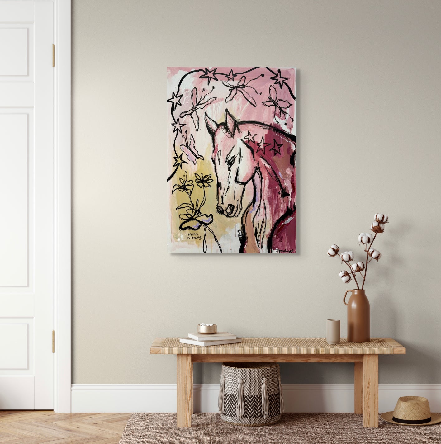 Technique: Acrylics and Oil pastels on cotton canvas