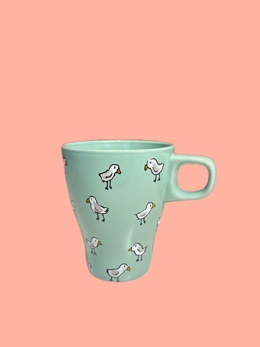 Disse gjenbrukte koppene er håndplukket og får nytt liv med håndmalte motiv. Hver kopp er unik, og resultatet er bærekraftige produkter med et personlig uttrykk. En fin gave – eller et lite løft til din egen kaffestund. Tåler oppvaskmaskin på maks 50 grader.